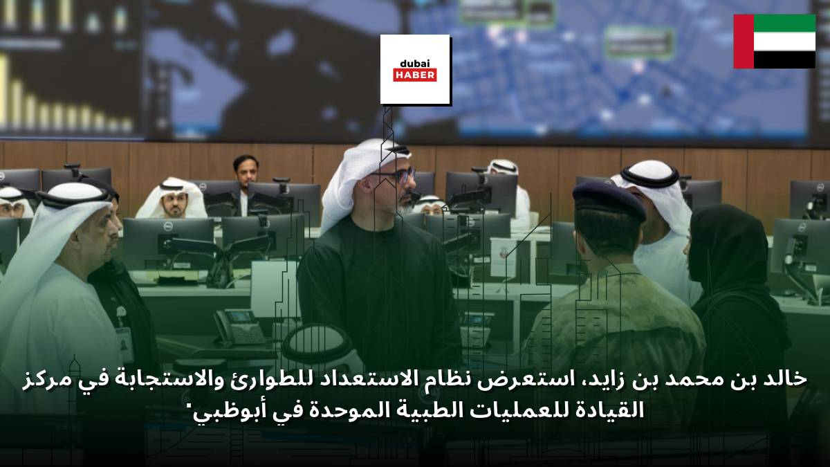 خالد بن محمد بن زايد، استعرض نظام الاستعداد للطوارئ والاستجابة في مركز القيادة للعمليات الطبية الموحدة في أبوظبي.