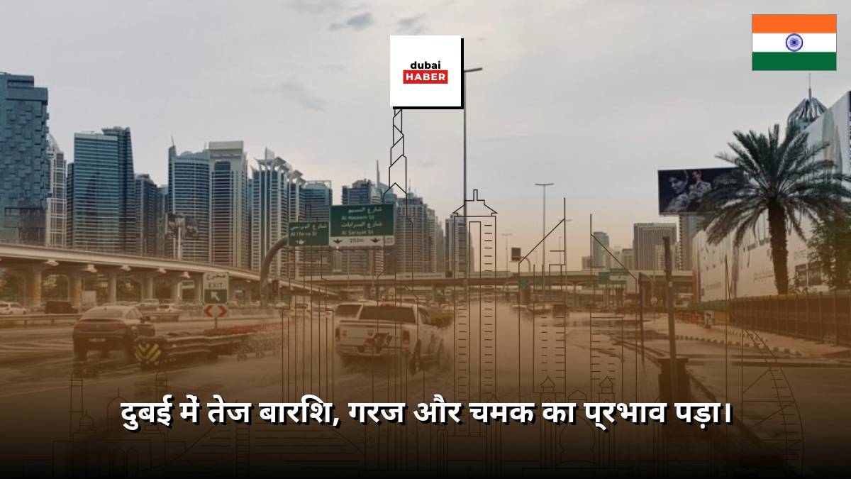 दुबई में तेज बारिश, गरज और चमक का प्रभाव पड़ा।