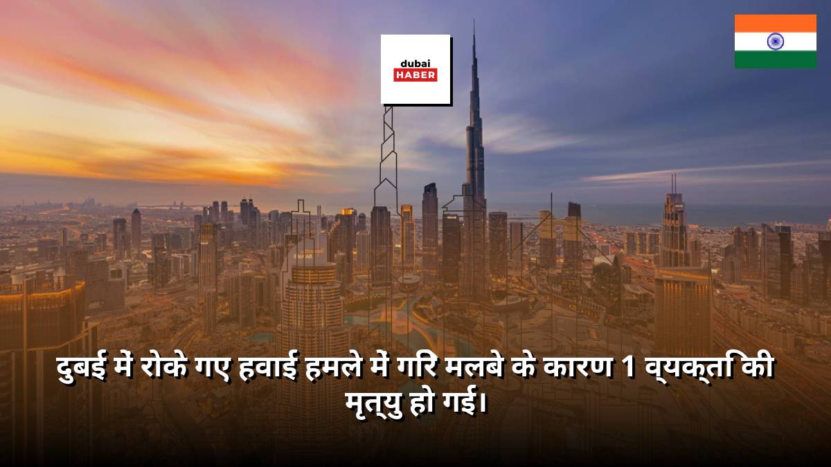 दुबई में रोके गए हवाई हमले में गिरे मलबे के कारण 1 व्यक्ति की मृत्यु हो गई।