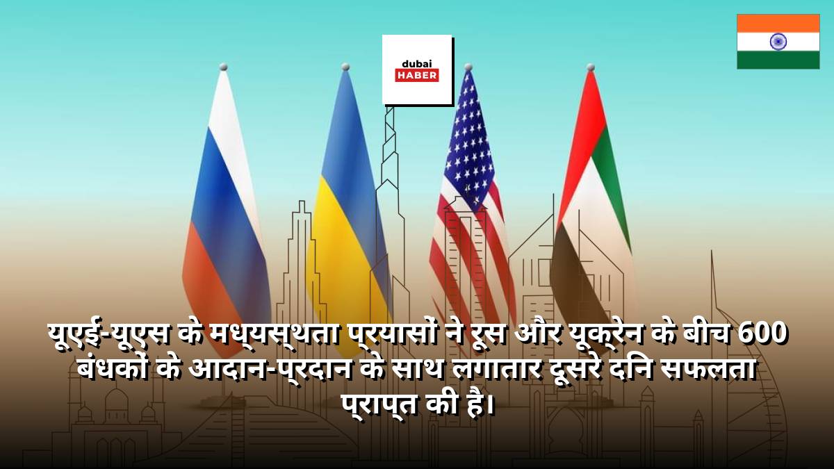 यूएई-यूएस के मध्यस्थता प्रयासों ने रूस और यूक्रेन के बीच 600 बंधकों के आदान-प्रदान के साथ लगातार दूसरे दिन सफलता प्राप्त की है।