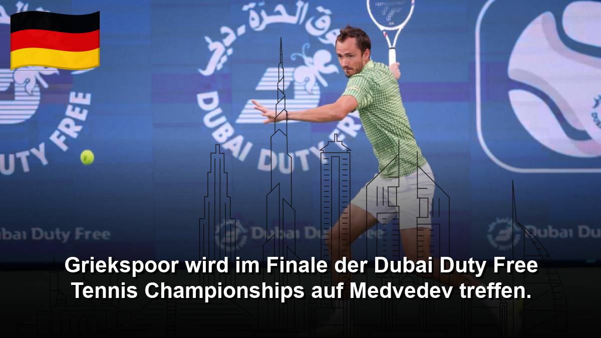DUBAI, 28. Februar 2026 (WAM) -- Der niederländische Spieler Tallon Griekspoor, der in der Weltrangliste den 25. Platz einnimmt, hat das Finale der 34. Dubai Duty Free Tennis Championships (ATP 500) erreicht und wird im Titelmatch gegen den Russen Daniil Medvedev antreten. Griekspoor wird am Freitagabend