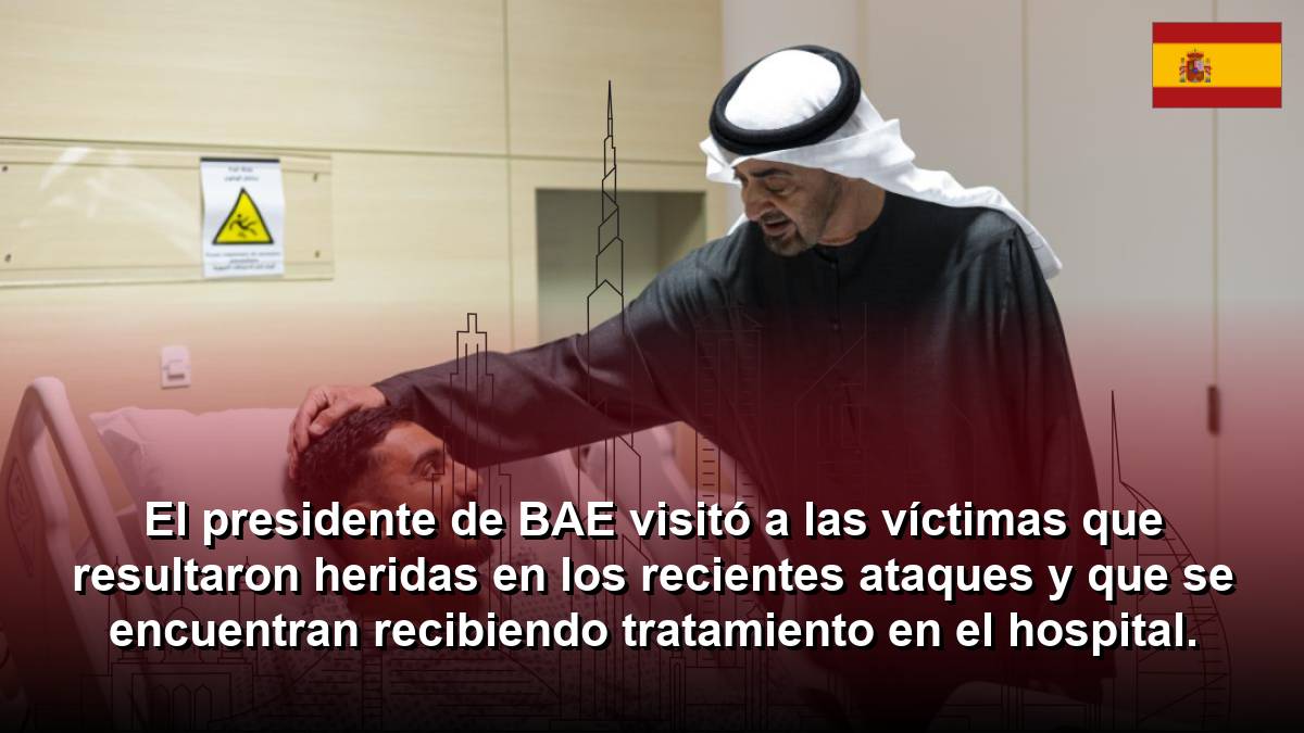 ABU DABI, 6 de marzo de 2026 (WAM) -- El Presidente de los EAU, Su Alteza Sheikh Mohamed bin Zayed Al Nahyan, visitó hoy a una serie de individuos que resultaron heridos en los recientes ataques de Irán y que se encuentran recibiendo tratamiento en el hospital, deseándoles una pronta recuperación y enviando sus mejores deseos a sus familias.