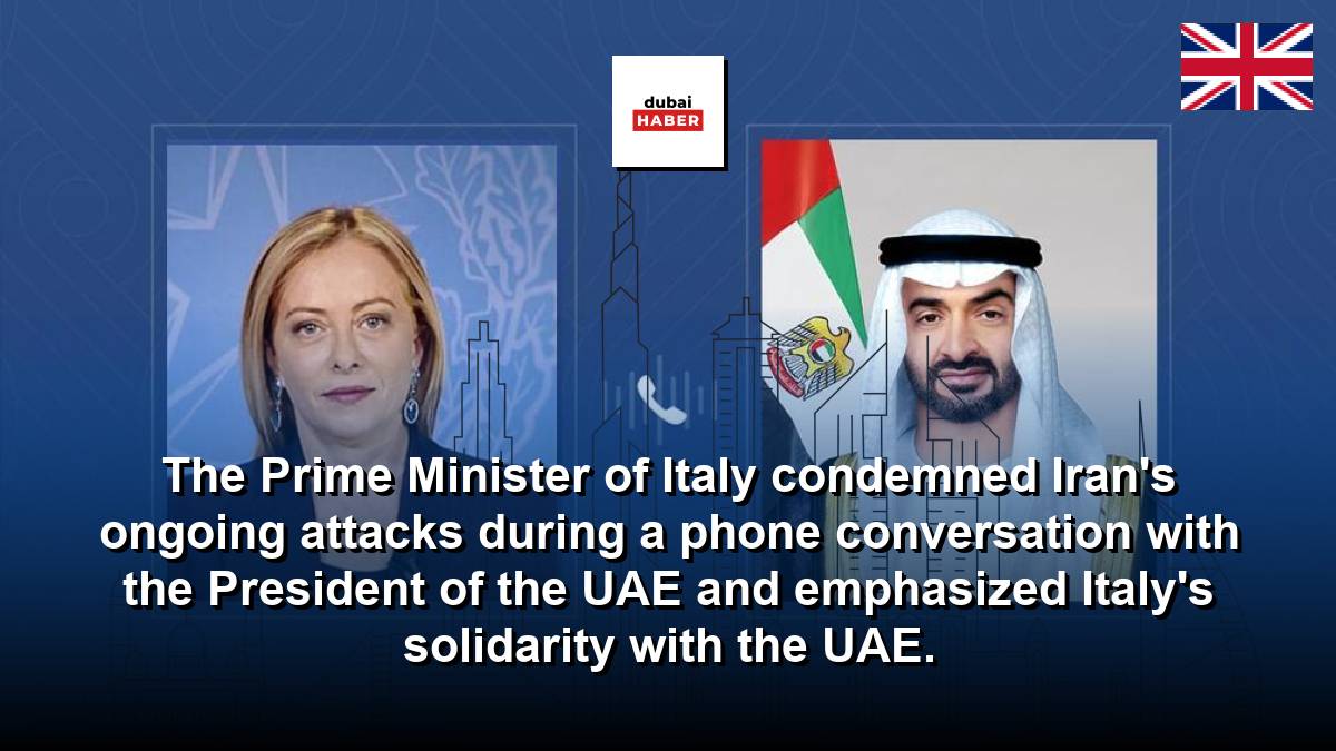The Prime Minister of Italy condemned Iran's ongoing attacks during a phone conversation with the President of the UAE and emphasized Italy's solidarity with the UAE.