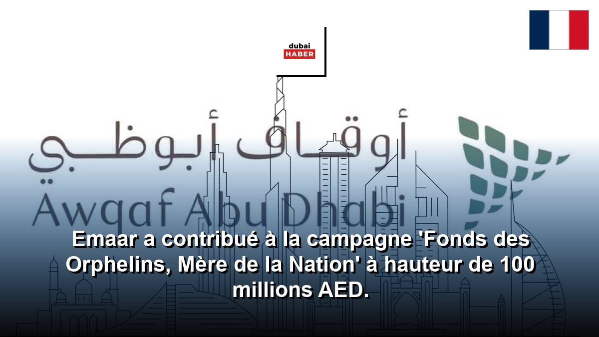 ABOU DABI, 19 mars 2026 (WAM) -- Emaar Properties a contribué à hauteur de 100 millions AED à la campagne "Fondation des Orphelins, Mère de la Nation", lancée par l'Administration des Fondations et des Petits de l'Abou Dhabi sous le patronage du Président Sheikh Mohamed bin Zayed Al Nahyan.