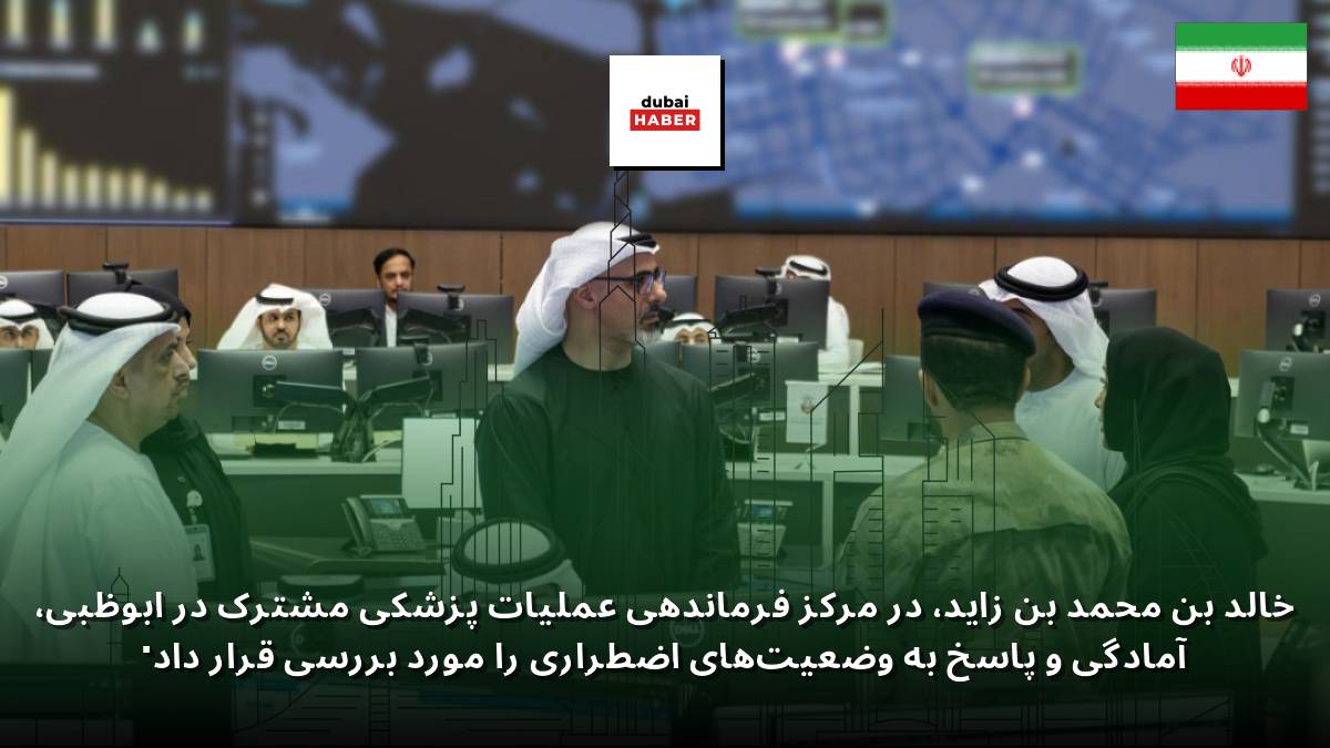 خالد بن محمد بن زاید، در مرکز فرماندهی عملیات پزشکی مشترک در ابوظبی، آمادگی و پاسخ به وضعیت‌های اضطراری را مورد بررسی قرار داد.