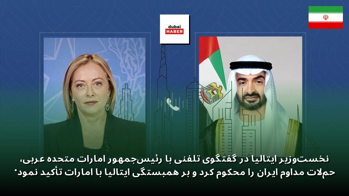 نخست‌وزیر ایتالیا در گفتگوی تلفنی با رئیس‌جمهور امارات متحده عربی، حملات مداوم ایران را محکوم کرد و بر همبستگی ایتالیا با امارات تأکید نمود.