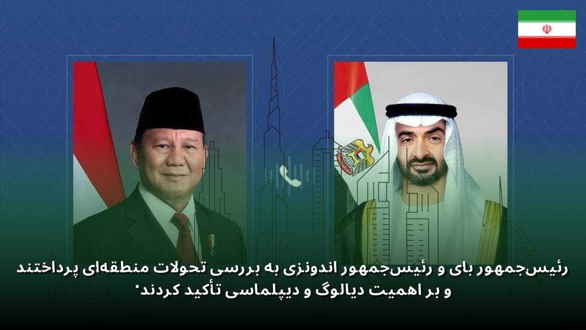 ابوظبی، ۵ مارس ۲۰۲۶ (وام) -- رئیس‌جمهور امارات متحده عربی، شیخ محمد بن زاید آل نهیان، امروز از رئیس‌جمهور جمهوری اندونزی، آقای پرابوو سوبیانتو، تماسی دریافت کرد. در این گفت‌وگو، هر دو طرف درباره اقدامات نظامی در منطقه بحث کردند.